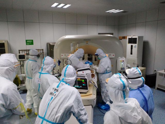 ICU白衣战士各司其职,小心翼翼地护送患者陈伯。
