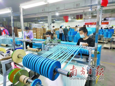 在广东新宝电器股份有限公司智能车间,自动化生产线快速运转。公司总裁助理谢小华告诉记者,企业3—4月订单不降反升,同比增长11.9%。
