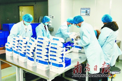 华大基因实验室,工作人员在加紧新型冠状病毒核酸检测试剂盒生产。南方日报记者 朱洪波 摄