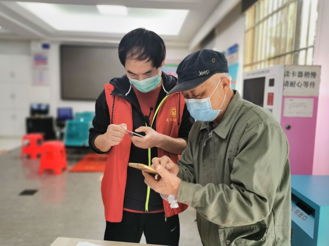3月23日,船厂社区,工作人员(左)指导居民申请健康码。邓浩摄