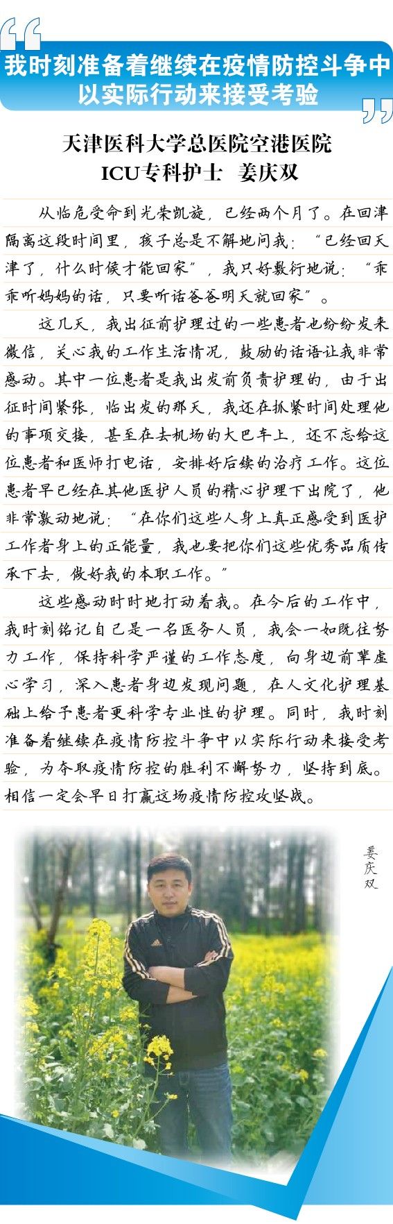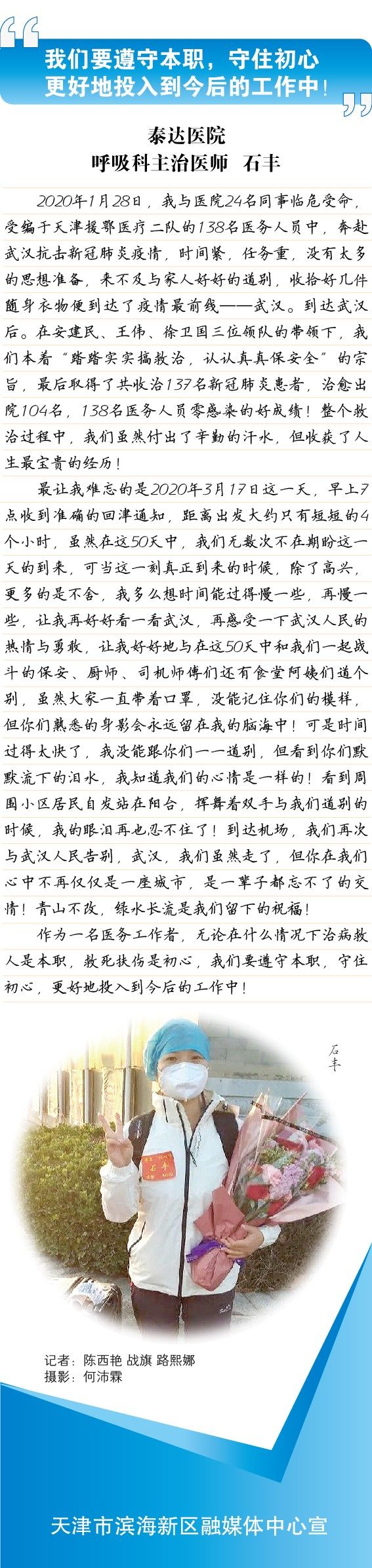 今日,恩施未来电,文字见真情。新区医疗队最后一位坚守恩施的医生,铁骨铮铮真汉子,站好最后一班岗,我们等你。