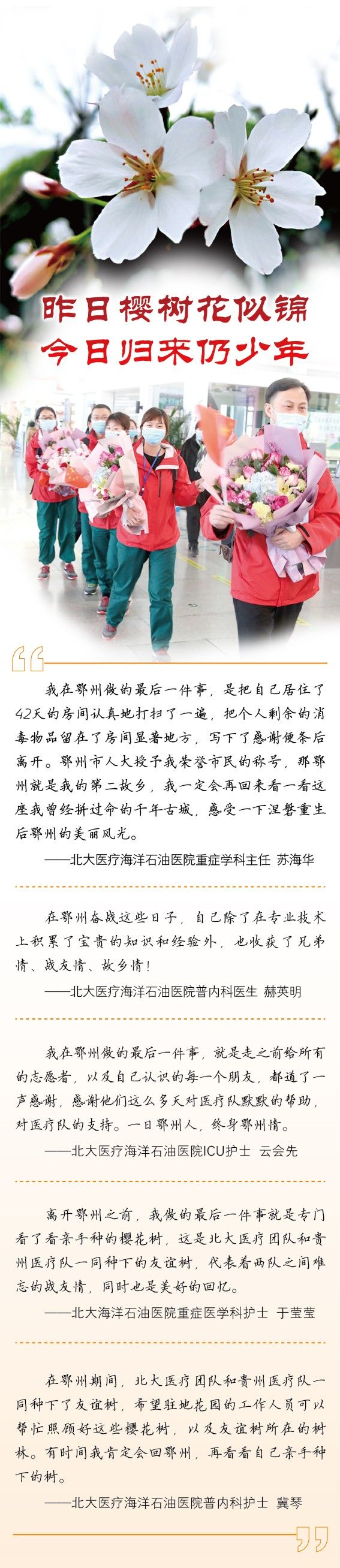【编辑日记】“昨日樱树花似锦,今日归来仍少年。”两行主题,三月往事,四(似)曾相识。小编意犹未尽,补上两句首尾呼应:“明日鄂城伤无痕,过尽千帆思故人。”这就是鄂州这座千年古城的昨天、今天和明天。待到来年樱花烂漫时,希望你们还能抽时间回去把酒言欢,漫步城廓。日记的最后,我们来好好看清楚他们的脸庞……