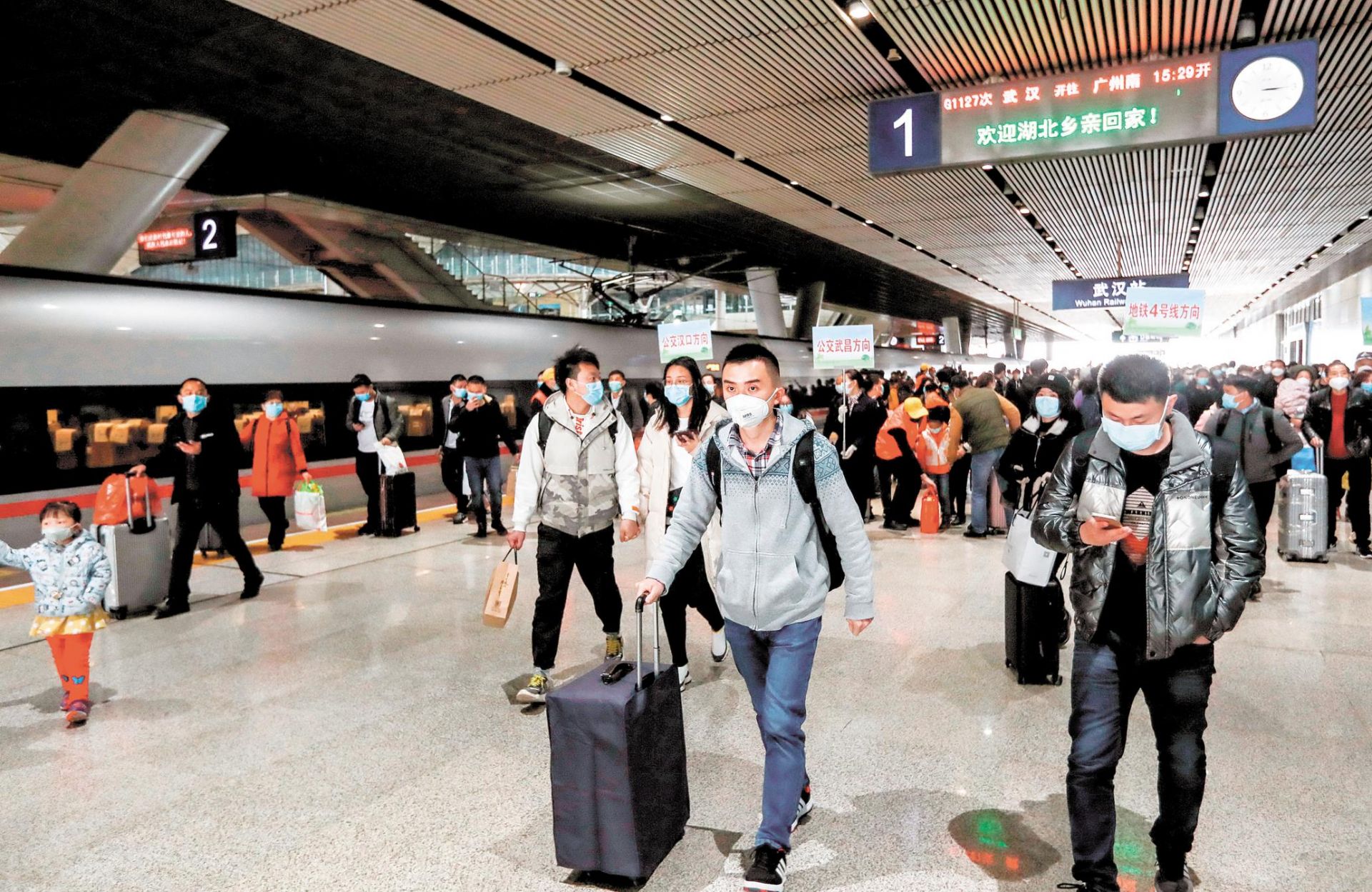 当日,一阵阵鸣笛声在三大火车站响起:第一趟动车——汉宜铁路D9302次列车载着577名旅客来了;第一趟汉十高铁G6860次列车从襄阳开过来,到达旅客798名;第一趟城际列车——武汉至黄冈城际列车C5604承载400多名旅客驶入武汉站;第一趟终到武汉的武广高铁来了,将滞留在广东的258名旅客送回武汉。