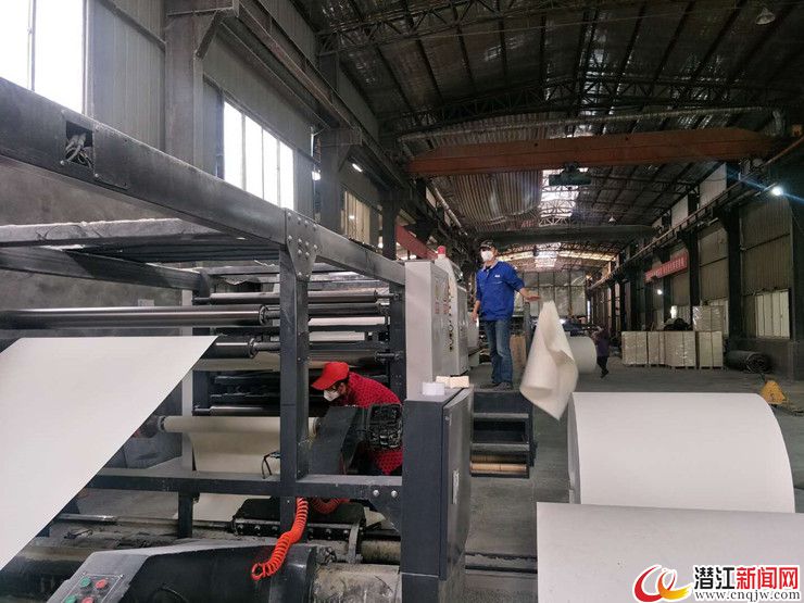 潜江新闻网讯(记者 王宇杰)3月27日,记者走进位于张金镇的潜江市福达纸业有限公司车间内,看到十多台机器快速运转,工人们佩戴口罩,保持一定的间距在各自岗位上有序忙碌着,一派热火朝天的生产景象。