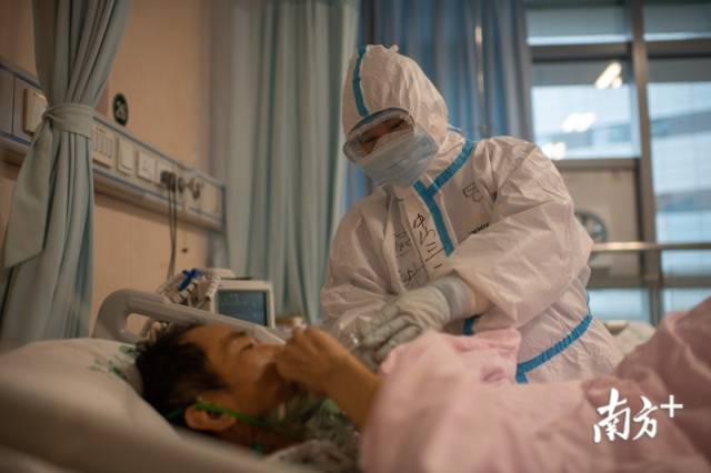 广东医疗队队员、中山三院呼吸与危重症医学科护士吴燕珊在照顾患者