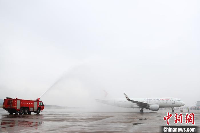 南昌昌北国际机场用民航界最高礼仪“过水门”的方式迎接援鄂医护人员们凯旋。 刘占昆 摄