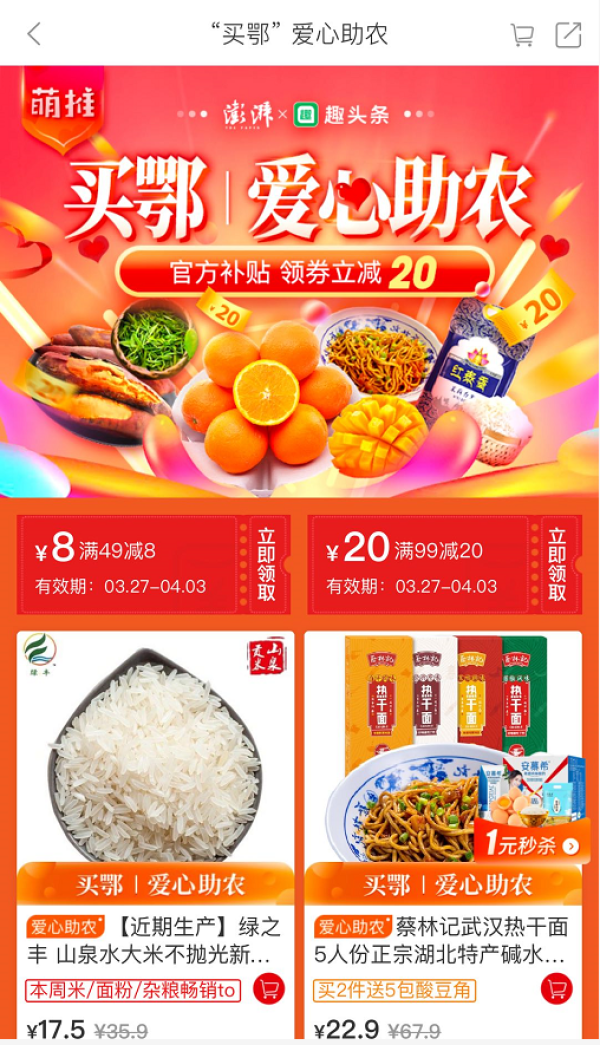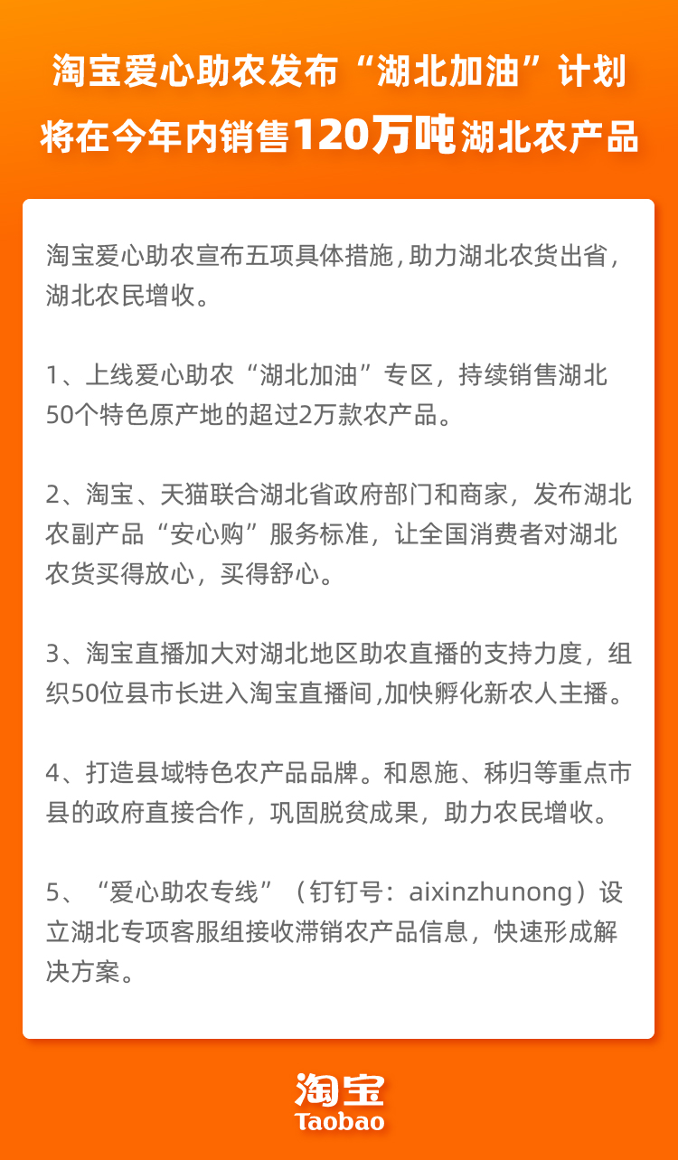 淘宝今天宣布:把湖北省作为今年农副产品和