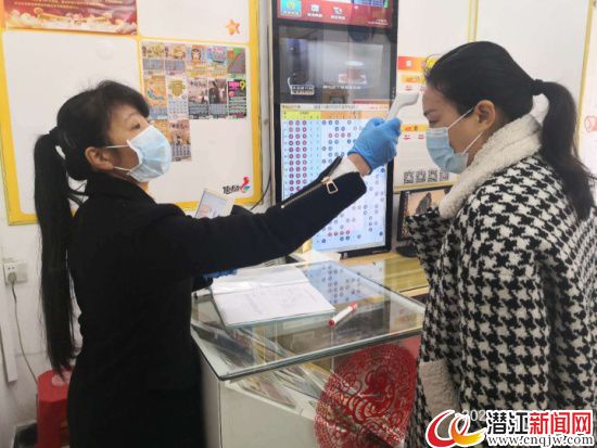 潜江新闻网讯(通讯员 蒋学彬)“36.8度,体温正常,您可以进店投注了!”3月31日,潜江体彩开市首日,47130店代销者徐保俊在彩票店门口用便携测温枪给一位购彩者测量完体温,在《体育彩票门店购彩者登记台账》上登记购彩者信息,彩购者进店购彩。