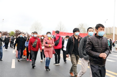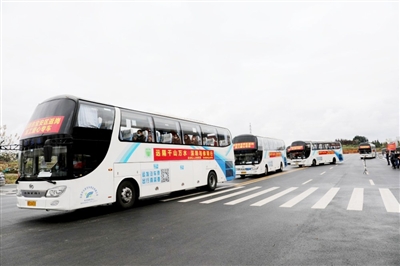 3月30日上午9时30分,在通山县文体中心,12辆 “点对点、一站式”输送返“粤”务工人员的爱心大巴专车,载着320名务工人员一路向南,前往深圳等地返岗复工,这是目前咸宁市人数最多的一次“点对点”输送。