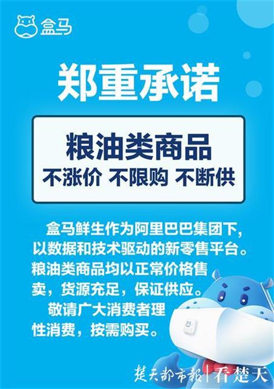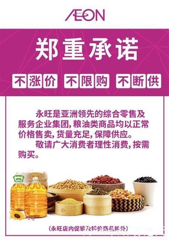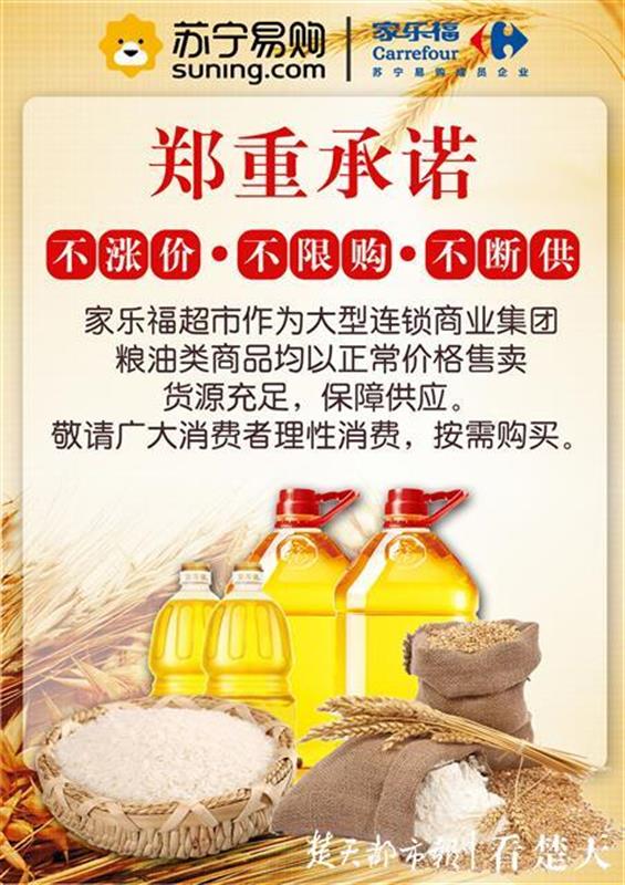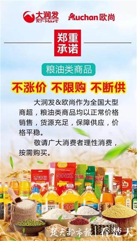 楚天都市报讯(记者周丹)4月1日,包括武商超市、中百仓储、中商超市、家乐福、盒马鲜生、沃尔玛、永旺等在内,武汉多家超市共同承诺:粮油类商品不涨价、不限购、不断供。各超市也都提醒消费者理性消费,按需购买。记者了解到,目前粮油类商品均以正常价格售卖,货源充足,保障供应。
