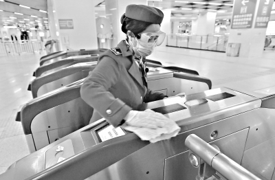 岳锋说,不仅如此,对乘客频繁接触的公共场所,如自助售票机、安检门、进入站刷卡的闸机、电梯及扶手、候车椅更是一小时消毒一次。