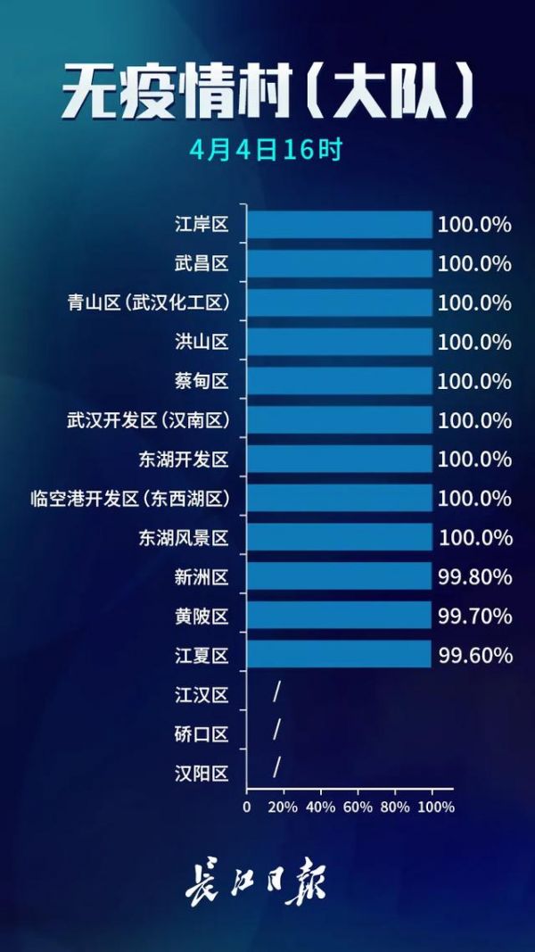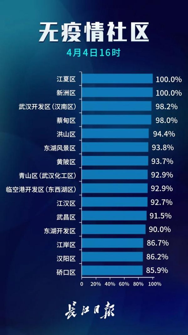 4月4日,武汉市新冠肺炎疫情防控指挥部社区疫情防控组公布全市第十一次评定的无疫情小区、社区、村(大队)名单,命名第七批无疫情街道(乡镇)。