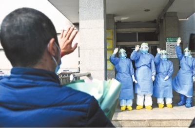 4月5日,住院78天的新冠肺炎患者彭博康复出院,他向前来送行的医务人员再三表示感谢