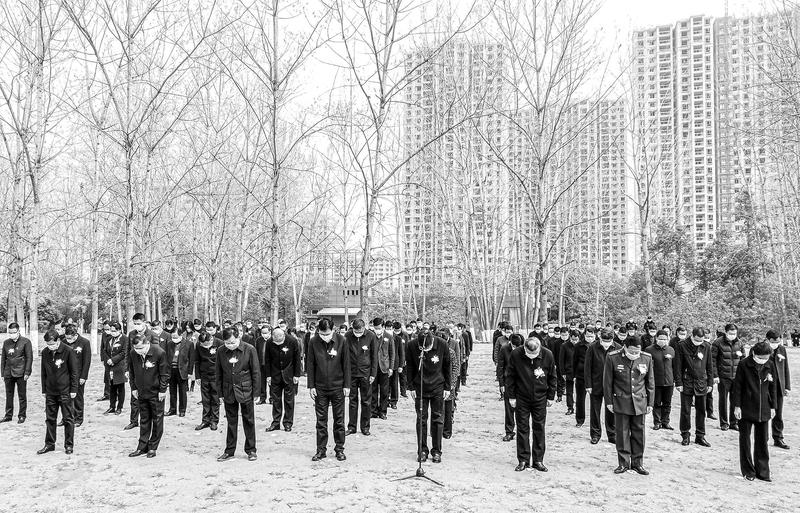 4月4日,随州市在滨湖体育公园举行哀悼活动,深切悼念新冠肺炎疫情牺牲烈士和逝世同胞。