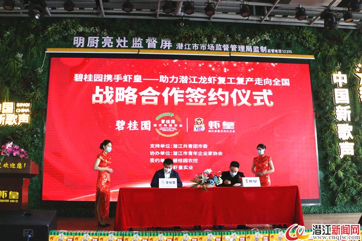 潜江新闻网讯(记者 谭欣)为助力潜江小龙虾产业复工复产复市,经前期团市委、市青企协多方奔走,最终助推潜江虾皇与碧桂园农业达成合作。4月8日,“碧桂园携手虾皇,助力潜江龙虾复工复产走向全国”战略合作签约仪式在虾皇龙虾城旗舰店举行。