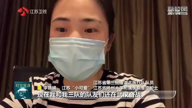 江苏援湖北医疗队队员、江苏省扬州大学附属医院重症护士李娟娟被广大网友昵称为“江苏‘小可爱’”,她说:“夜里12点一到,江边都亮起来了,真的好漂亮。我想这应该是武汉本来应该有的样子吧。现在我和三队的队友们还在武汉奋战,希望病人的情况能越来越好。”
