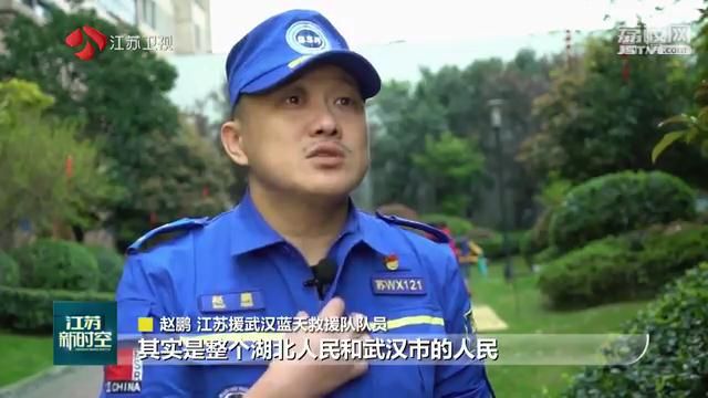 江苏援武汉蓝天救援队队员赵鹏说:“我们最应该感谢的其实是整个湖北人民和武汉人民,对他们的祝福也有很多很多。”