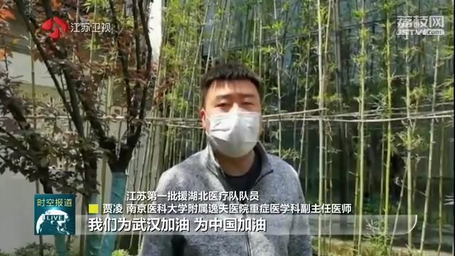 江苏援湖北医疗队队员、南京医科大学附属逸夫医院重症医学科副主任医师贾凌说:“我们为武汉加油,为中国加油!山河无恙,未来可期!”