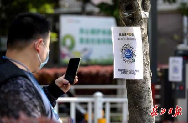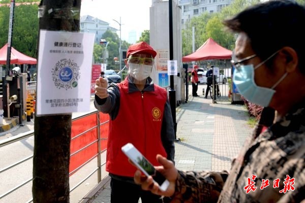 东西湖区常青花园三社区物业、志愿者,在出入口设置多个健康二维码供出行人员扫描,大大提高通行效率。同时,劝阻无必要出行人员出入小区,继续做好小区封控管理。 (记者刘斌 摄影报道)