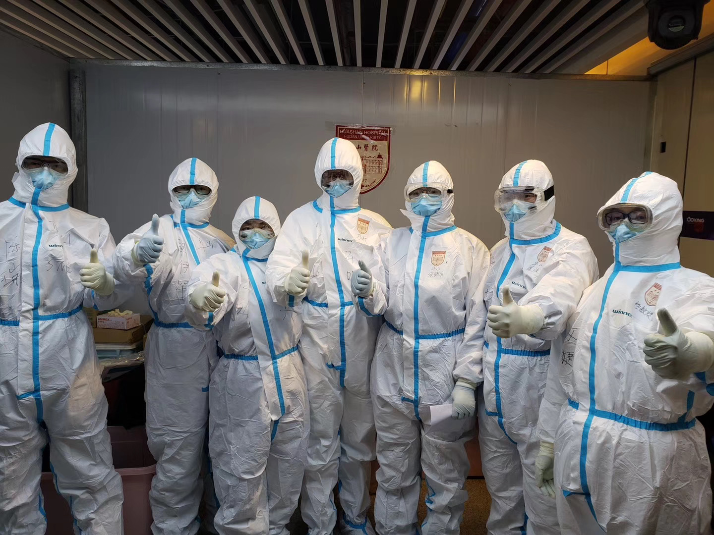 方舱医院过道上有幅医疗队成员的诙谐之作