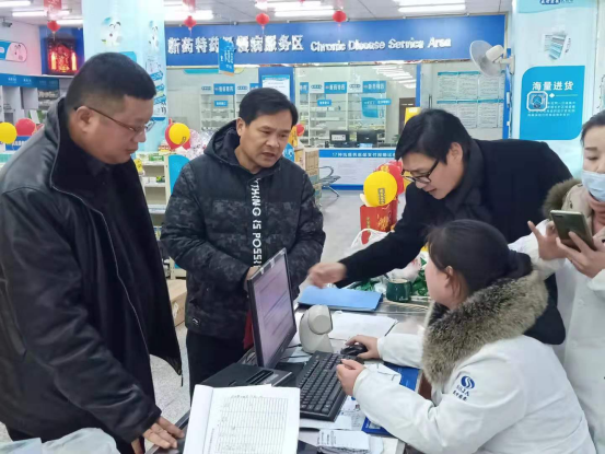 付文胜与同事对药店价格进行检查 通讯员供图
