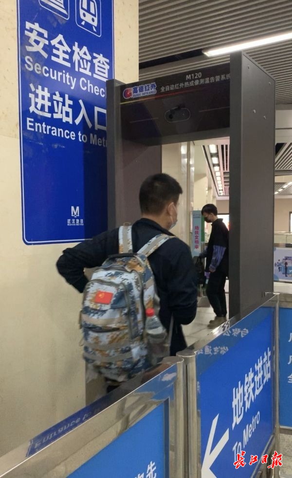 随着越来越多的人复工复产,武汉地铁陆续推出各项举措保证防控便民两不误。长江日报-长江网记者在地铁武昌火车站站、汉口火车站站、黄浦路站、惠济二路站等站点看到,地铁站在原红外线测温仪的基础上,设置了测温门。乘客经过测温门,系统会快速准确测出乘客的体温,武汉火车站站工作人员雷蕾说,测温门能更安全更快速帮助乘客进站。