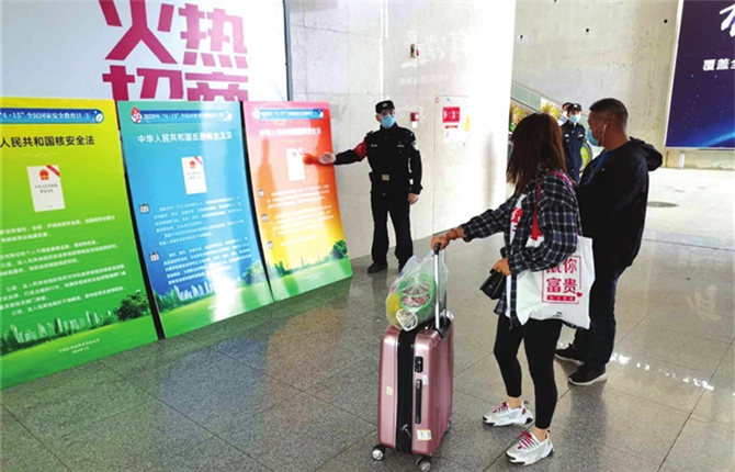 4月15日上午,三伏潭派出所组织民警辅警5人,在仙桃西站开展国家安全教育日集中宣传活动。 摄影 通讯员 郭聪