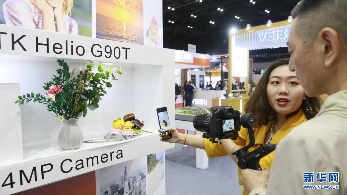 “2019环球资源移动电子展”日前在香港亚洲国际博览馆举行。本次展会聚焦移动设备、可穿戴、移动配件等创新电子产品,并针对5G时代特设了AIOT PARK展区以及创客展和科技礼品展等,总体规模逾3700个展位。图为参展企业工作人员演示手机智能拍照识别系统。(新华网亚太传播运营中心供图)