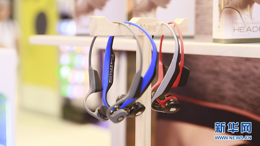 “2019环球资源移动电子展”日前在香港亚洲国际博览馆举行。本次展会聚焦移动设备、可穿戴、移动配件等创新电子产品,并针对5G时代特设了AIOT PARK展区以及创客展和科技礼品展等,总体规模逾3700个展位。图为深圳一家企业展出的一款骨传导健康运动耳机,可配合5.0蓝牙。(新华网亚太传播运营中心供图)