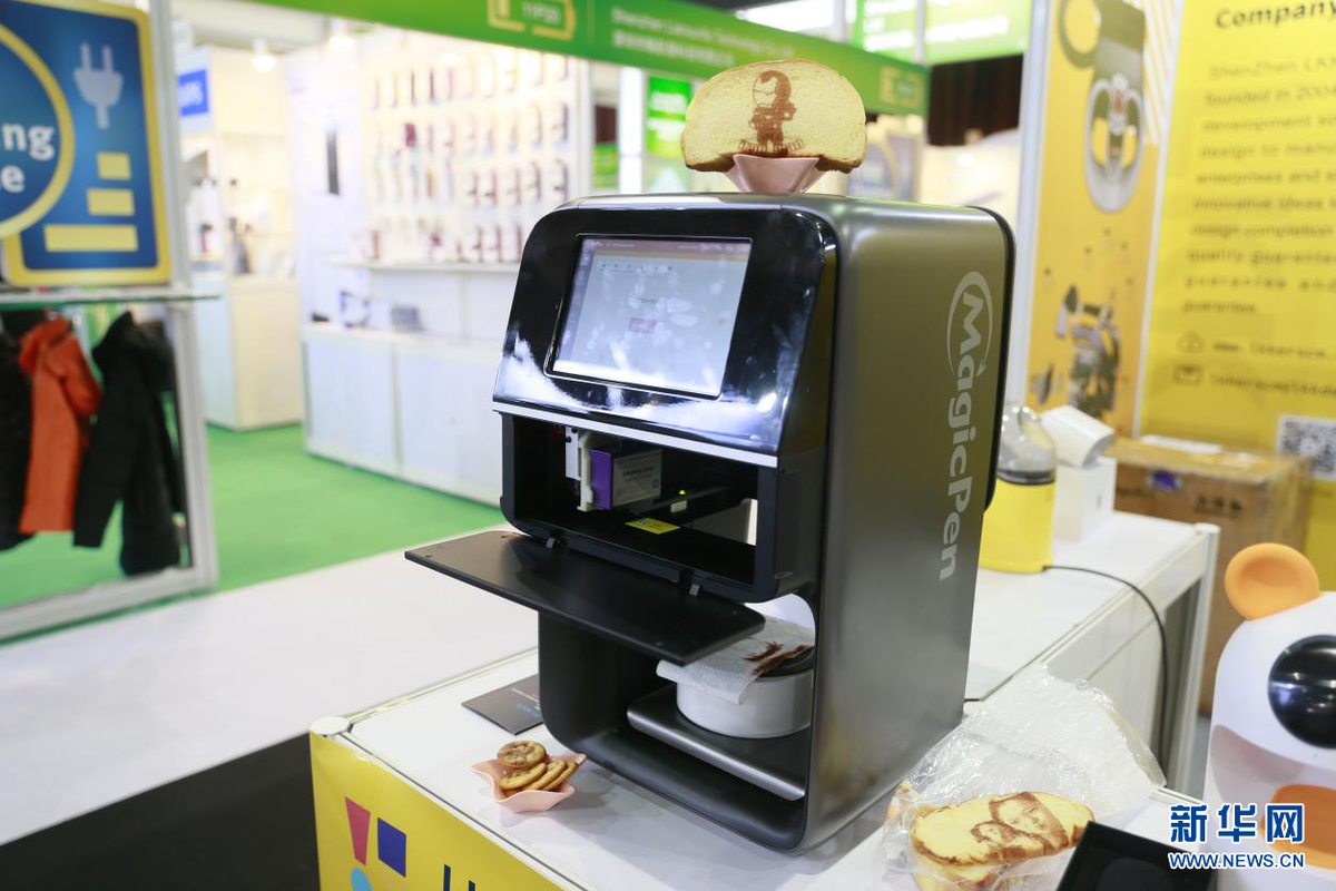 “2019环球资源移动电子展”日前在香港亚洲国际博览馆举行。本次展会聚焦移动设备、可穿戴、移动配件等创新电子产品,并针对5G时代特设了AIOT PARK展区以及创客展和科技礼品展等,总体规模逾3700个展位。图为“创客展览专区”展出的食品印花机,可让食物既好吃又好看。(新华网亚太传播运营中心供图)