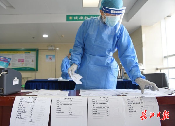 武汉市第四医院从4月8日起推出复工体检项目以来,该院专设1000平方米体检大厅,为复工单位员工进行核酸、CT、血样检测,目前已为近6000名市民筛查体检。该院体检中心负责人张雪介绍,对于单位团体体检,单位可以根据需求,安排职工分批来院体检,医院也可以提供上门服务。