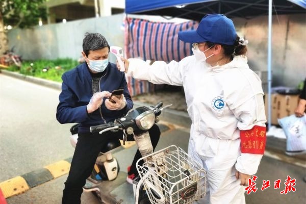 长江网4月18日讯(记者杨佳峰 通讯员陈春琳) “今天还去了其他地方吗?上班有没有注意防护?有消毒措施吗?”每天,硚口区阮家台社区的下沉干部夏黎检测完入内居民的体温后,总是会习惯性地多“唠叨”几句,了解居民当天的活动轨迹,并再次提醒居民注意上下班途中的个人防护。