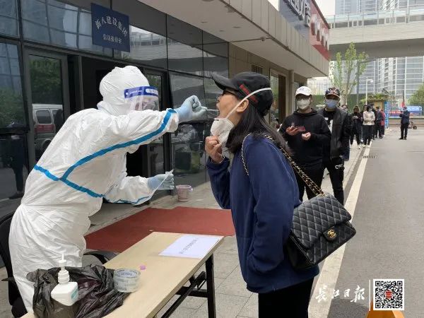 日前,武汉市六医院健康管理中心的医护人员上门为新八建设集团的100多名员工进行核酸检测和抗体检查 长江日报记者杨涛 摄