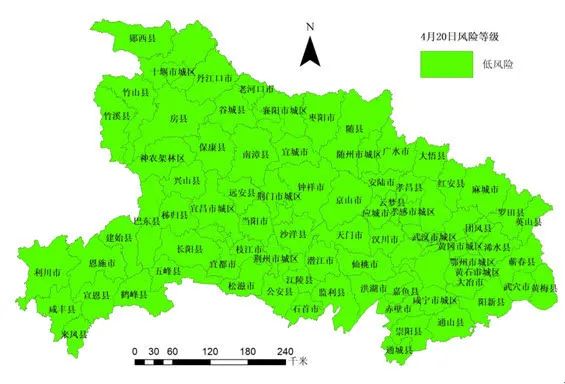 4月22日,湖北省新冠肺炎疫情防控指挥部发布更新市县疫情风险等级评估,全省低风险市县有76个,无中、高风险市县。继4月18日发布《武汉,低风险!》后,全省依然保持低风险态势。
