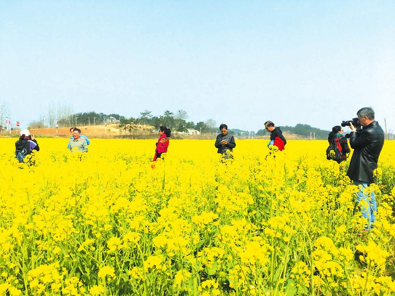 广水市陈巷镇农旅结合,充分利用田园风光开发旅游,吸引周边游客前来观光。图为游客在盛开的油菜花中徜徉。(随州日报通讯员邓红军摄)
