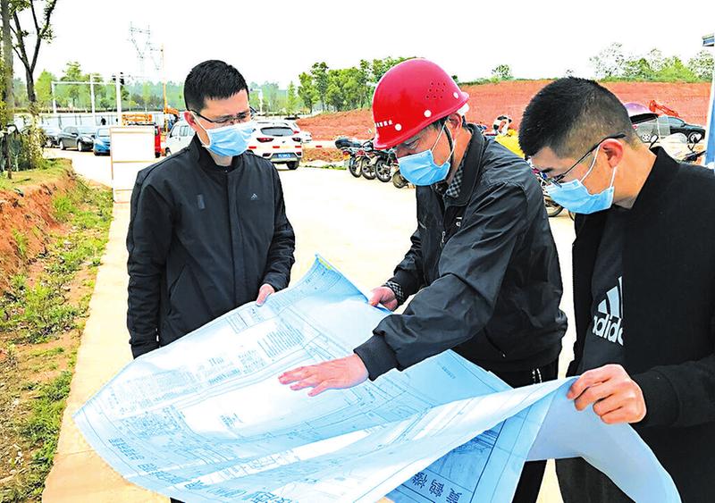 随州高新区国土规划分局结合职能职责要求,上门包保项目落实精准服务。目前,该局已为10余个复工复产企业项目在用地、规划许可等方面全程服务到位。图为工作人员上门为黄鹤楼酒业项目做规划定图。