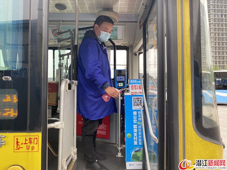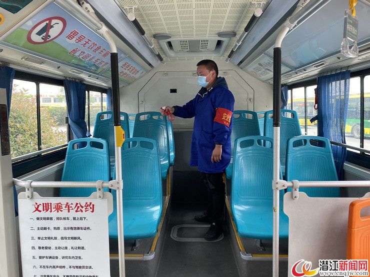 4月24日,记者来到潜江市楚道交投公共交通有限公司看到,司机和随车安全员正在对公交车进行发车前的例行消毒。正在104路公交车上进行消毒的随车安全员郑海文告诉记者,他原本是一名公交车司机,受疫情影响乘客大幅减少,于是他在公司的号召下做起了随车安全员。“现在每一辆公校车都实行一趟一消毒,行车过程中保持全程开窗通风。”郑海文介绍。