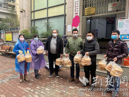 努力麦麦提库宛为熊家台社区和育才社区抗疫工作人员送去馕饼和抓饭