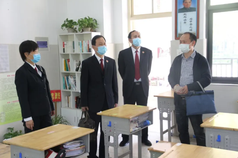 为了保障广大师生健康安全,确保学校安全有序复学复课,4月27日,阳新县检察院党组书记、代检察长尹义林一行深入走访阳新县第一中学,在校长明道树及相关负责人的陪同下,查看校园复学复课防控工作,为筑牢校园“防疫墙”注入检察力量。