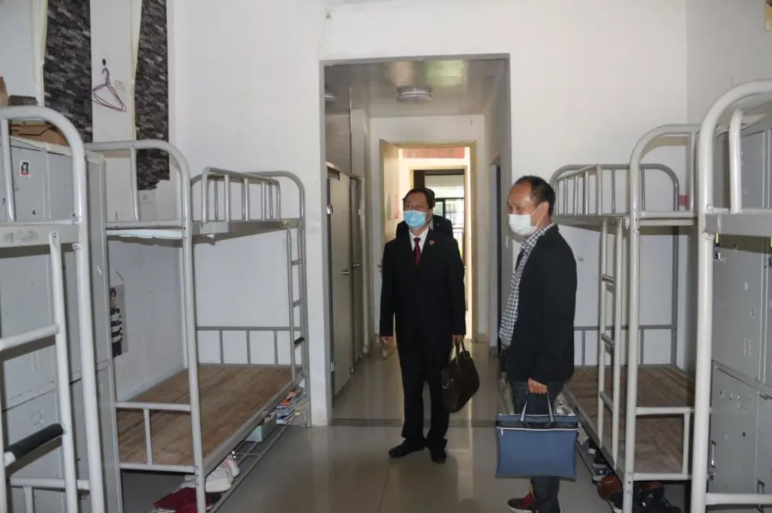 “高三学生复课在即,防控工作责任重大,要始终绷紧防疫这根弦,做实、做细各项准备工作。”走访过程中,尹义林一行先后对学生入校方式,校园内学生宿舍、餐厅和教室进行细致查看,了解学校防疫物资准备、防控宣传、应急预案等相关工作情况;考虑到学生受居家隔离和学习压力的影响,可能出现情绪波动较大等情况,尹义林特别查看了该校心理咨询室,详细了解各项设施和疏导方式,并提出建议。