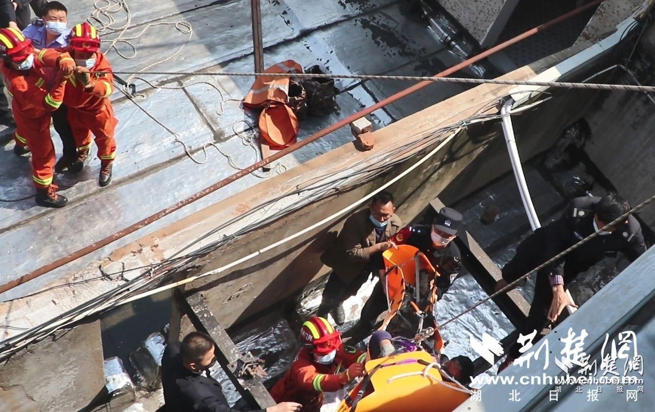 荆楚网客户端—荆楚网消息(通讯员 杨丽)4月27日上午,湖北荆门市一名男子在某住宅检修防盗网时不慎失足,掉落到住宅楼外的水槽上面,当地消防部门迅速赶赴现场,将该名男子转移,送至医院接受治疗。