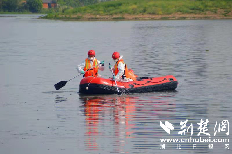抵达现场后,救援人员发现一男子在池塘中央,只剩一个脑袋浮出水面,并且意识开始出现模糊状态。情况紧急,现场指挥员立即对现场周边水域情况进行勘察,随后让三名水性较好的消防员做好个人防护后,驾驶皮划艇进入河道对该男子进行施救。待皮划艇靠近被困人员后,消防指战员发现该池塘近期抽过水,底部淤泥比较深,被困人员双脚陷入淤泥内,两名消防员迅速将被困人员从淤泥中拔出,并将其抬放到皮划艇侧卧位向岸边转移,防止转移过程中有偏移、跌落的风险。