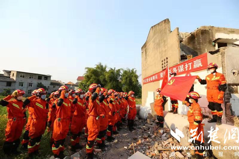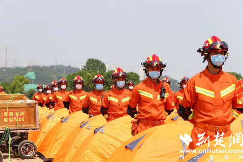 演练假定4月28日6时50分宜昌市点军区巴王店村发生6.5级“地震”,建筑倒塌,部分人员被埋压,进入震中的道路交通被阻断,车辆无法通行……“灾情”发生后,宜昌市消防救援支队立即启动地震灾害救援应急预案,迅速调集1支重型队、2支轻型队以及调度指挥、作战救援、应急通信、宣传报道、战勤保障、政工保障6个组共计150名指战员,携带72小时自我保障物资以及搜救、破拆、生命探测等5800余件套器材装备集结。