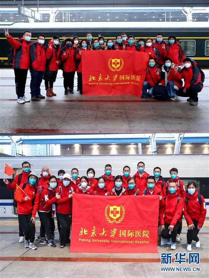 拼版照片:2月6日,北京大学国际医院医疗队队员出发前在北京西站合影(上图);3月31日,北京大学国际医院医疗队队员抵京后在北京西站合影(下图)。 新华社记者 张玉薇 摄