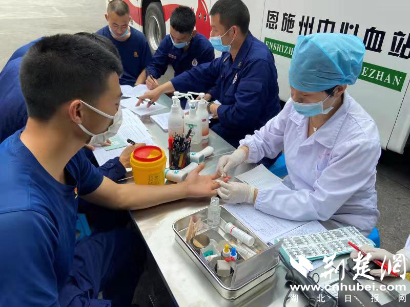 5月4日上午,恩施州中心血站采血车驶入特勤站院内,指战员们有序填表、检测.....整个献血过程有条不紊。献血队伍中,有已经连续多年无偿献血的“达人”,也有鼓起勇气初次上阵的“新手”,他们都希望通过献血,为社会贡献自己的一份力量。