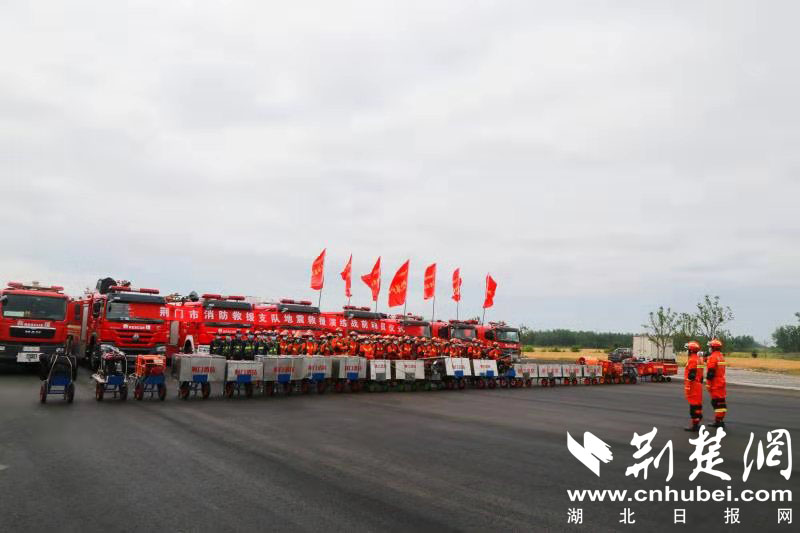 灾情假定荆门市沙洋县沙洋镇青泥村二组发生里氏6级以上地震,震源深度10千米,地震导致群众房屋受损,交通要道毁坏,大量群众被埋压。荆门市消防救援支队支队指挥中心接到报警后,迅速启动《荆门市消防救援支队地震灾害救援预案》,按照就地调动、就近调动、成建制调动、增援调动的图层力量调度,调集支队轻型地震救援队、县市区(钟祥、京山、沙洋)地震救援分队、应急通信保障分队和战勤保障分队10车75人,携带72小时自我保障物资以及生命探测、破拆起重、顶撑支护、警戒洗消等装备器材1000余件套前往灾害事故地点附近集结开展救援行动,支队全勤指挥部遂行出动。