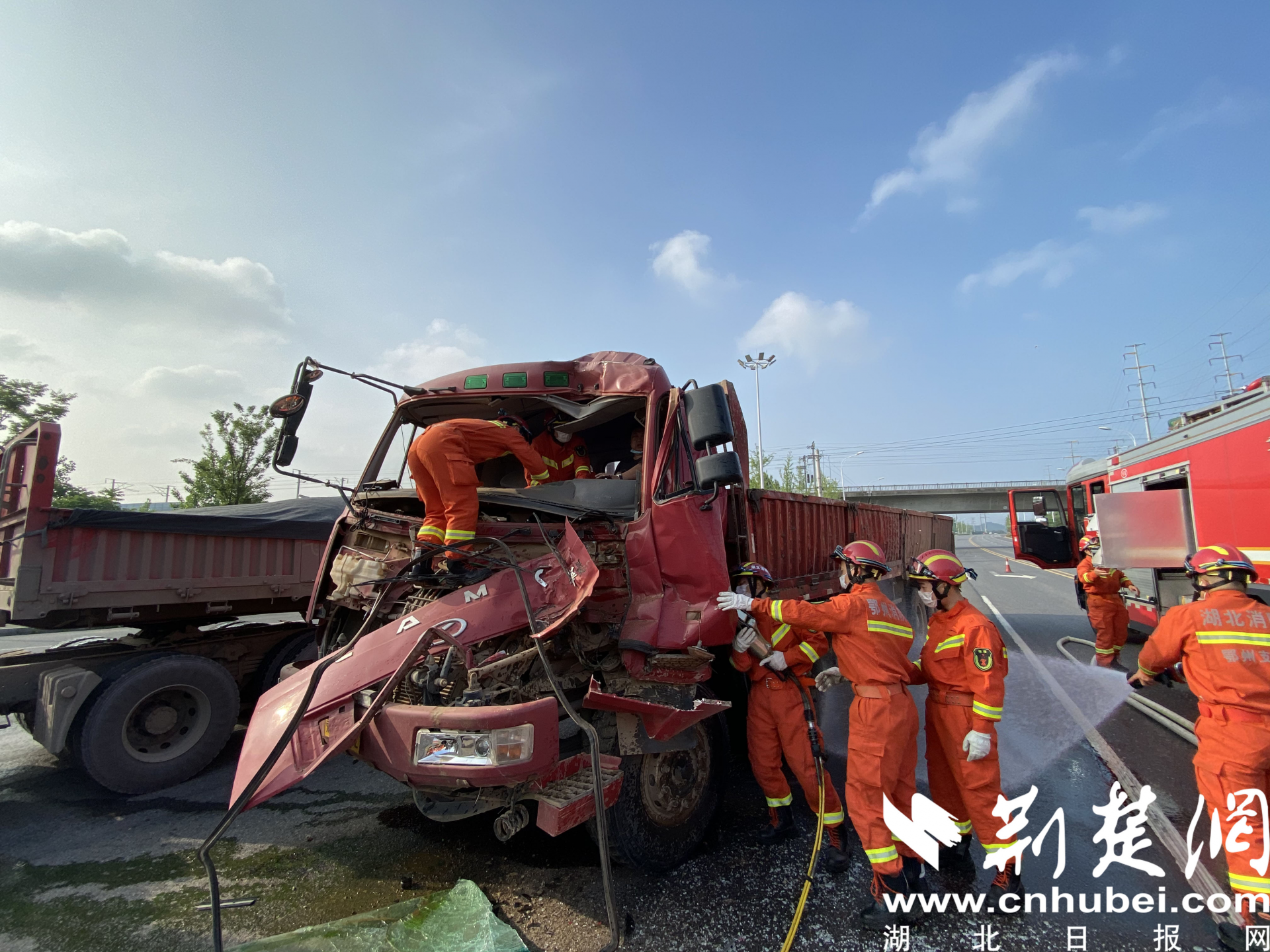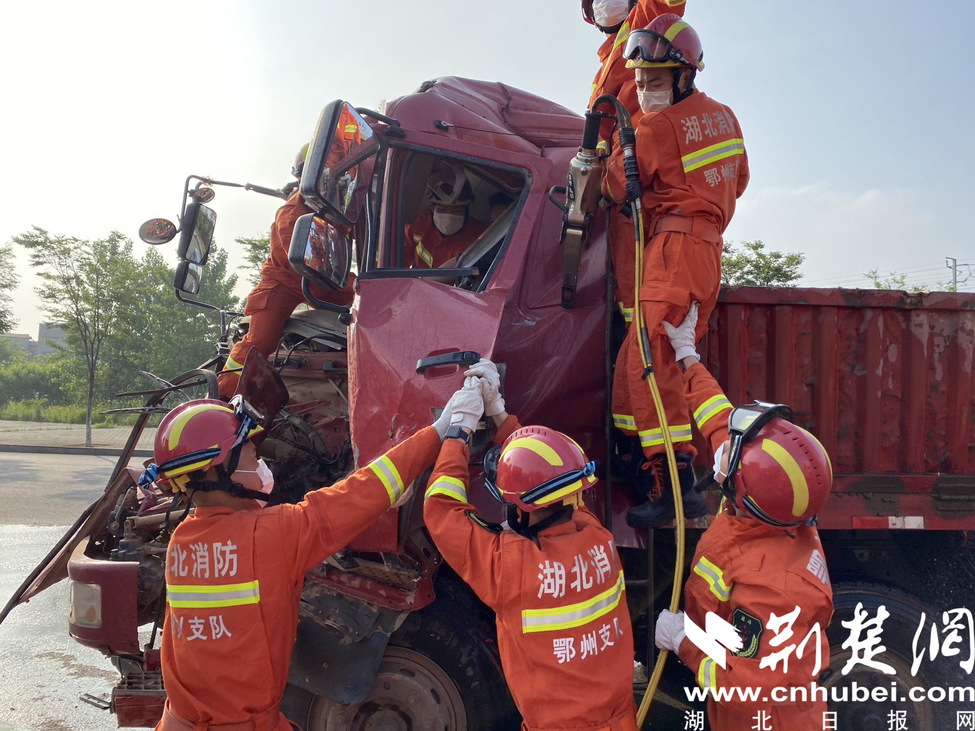 荆楚网客户端—荆楚网消息(通讯员黄剑双、程久东)5月10日上午7时33分,鄂州市消防救援支队接到报警称,市委党校附近发生交通事故,有人员被困,接到报警后,支队立即调派葛山大道特勤消防站赶赴现场救援。