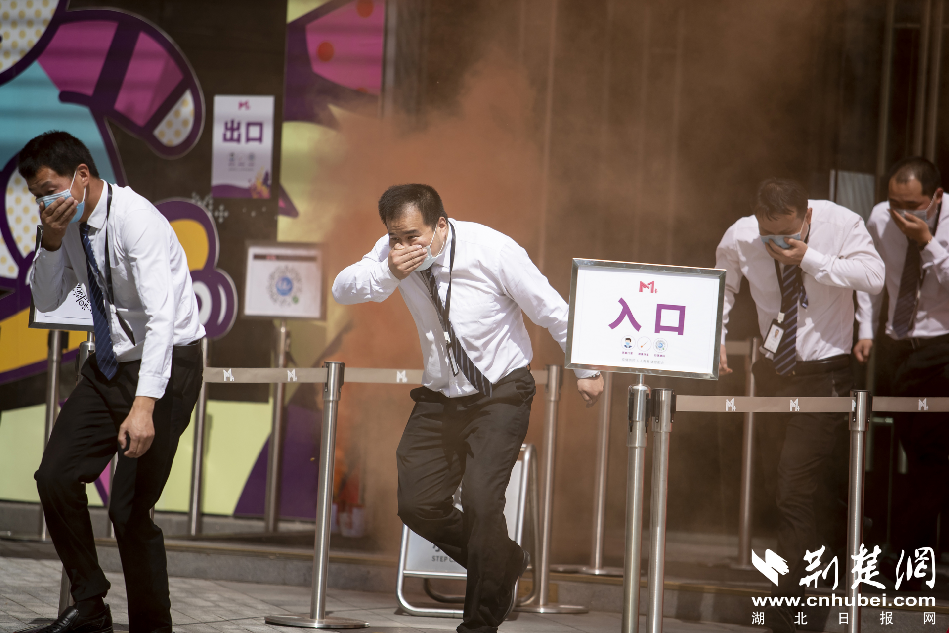 武汉市江汉区M+购物广场,消防等多部门联合开展大型商业综合体火灾应急处置演练