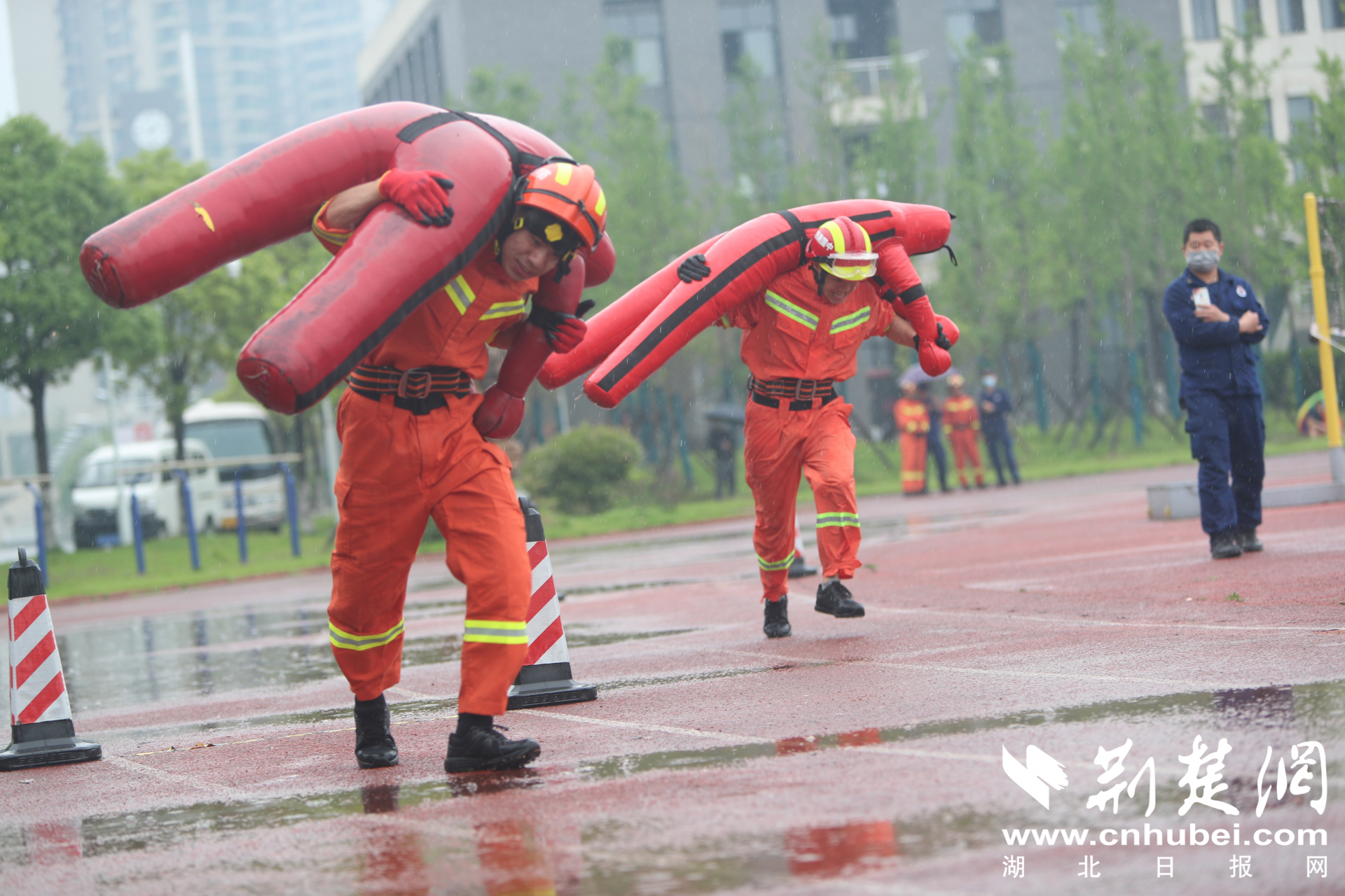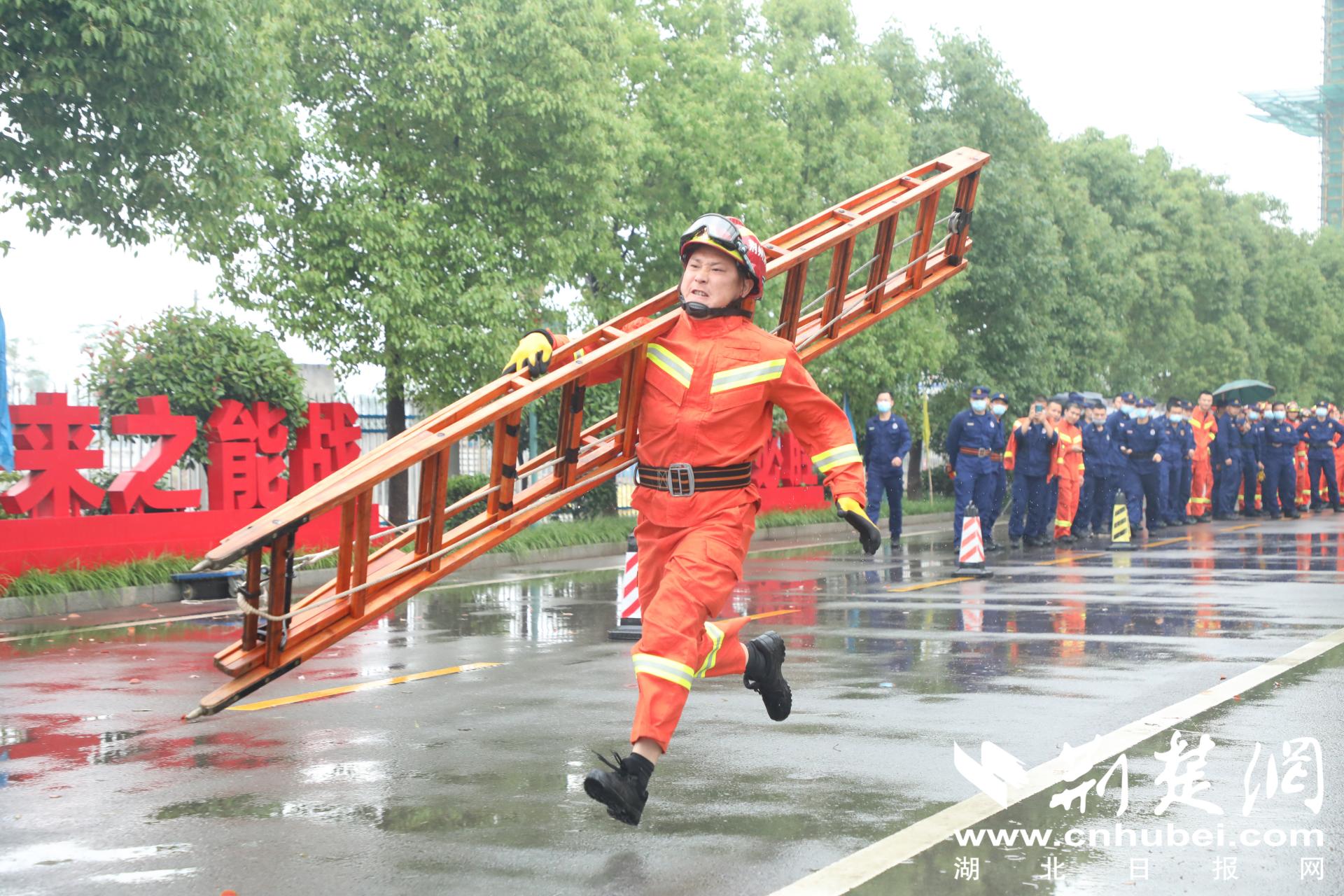 荆楚网客户端—荆楚网消息(通讯员 杨秋、彭孟)5月13日至14日,湖北荆州97名消防指战员同台PK体能,上演了一场实力与荣誉的“硬核”对决。比试分为指挥员、消防员、政府专职队员进行,设置了5000米负重跑、3000米跑、200米负重跑、400米救人疏散物资操、60米肩梯跑、60米肩梯登楼等6个科目。参赛者中年龄最大的37岁,年龄最小的19岁。