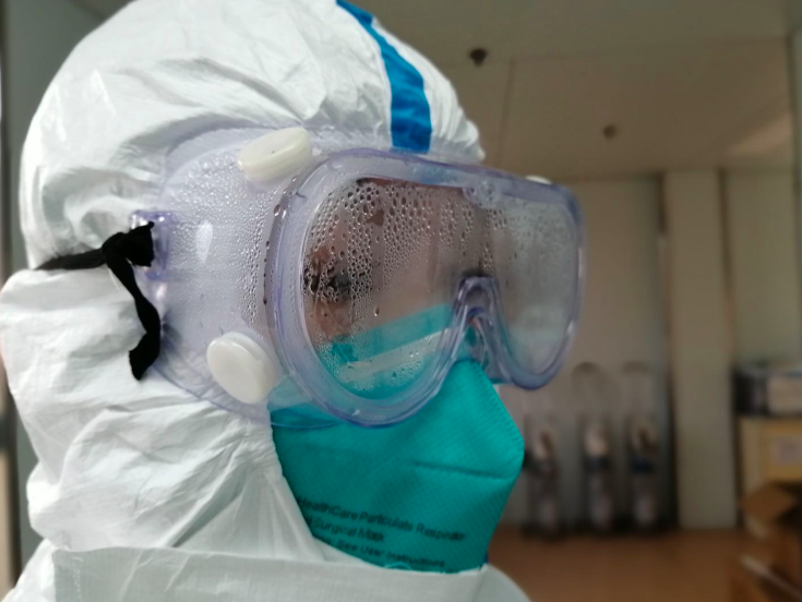 仁济医院一名驰援上海市公共卫生中心重症隔离病房的护士,全副武装